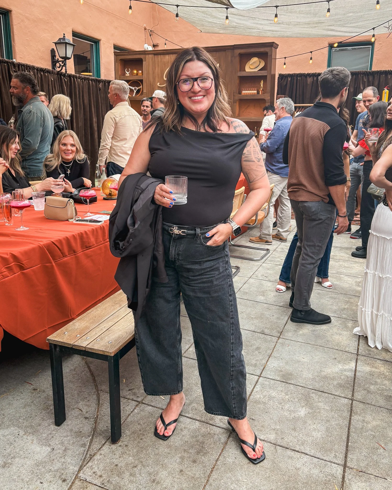 After a comfy road trip, we turned up the volume for a night out in San Diego—starting with a tequila tasting (yes, it was as fun as it sounds) and ending at a dueling piano bar that had us dancing and singing until past our bedtime. I wore an off-the-shoulder Abercrombie top paired with my go-to barrel-leg jeans and some kitten-heel sandals. I tossed on an oversized black blazer just in case the ocean breeze kicked in. I felt so good in this outfit—perfect for sipping tequila and singing at the top of my lungs with my college girls.